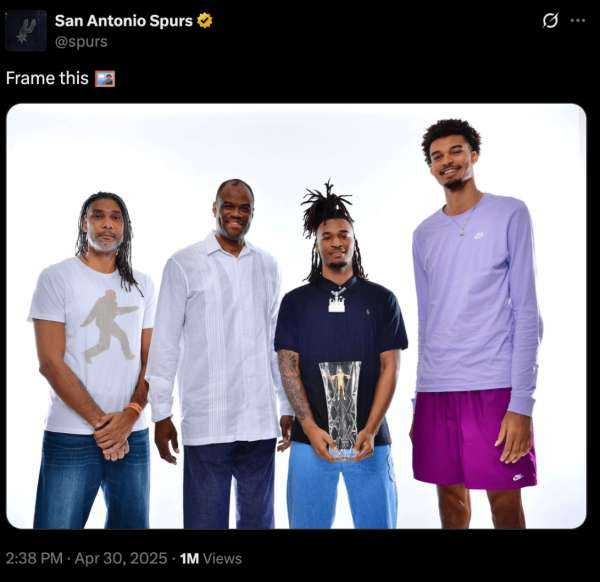 如果真是这样,那张马刺“四位年度最佳新秀”合照里的身高差距就合理多了。