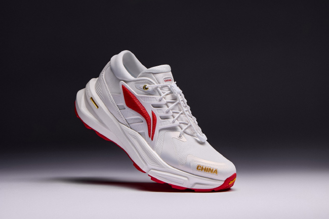 领奖鞋与领奖服配色一致,汲取战马的肌肉和骨骼作为设计灵感,寓意中国运动健儿在马年赛场“马到成功”。