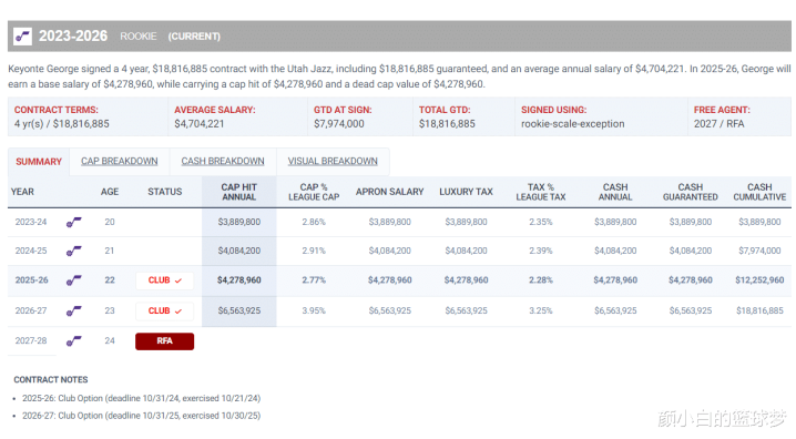 这场比赛之前,爵士队官方发布将执行乔治26-27赛季的球队选项,22岁的乔治是2023年首轮16顺位,他此前的两个赛季都是打二号位,这个赛季球队将他摆在了一号位上,但他还是有一颗SG的心。