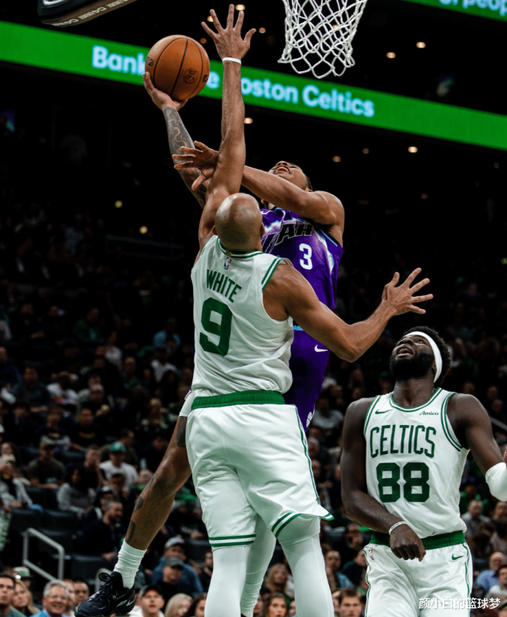 北京时间11月4日,犹他爵士以105-103逆转波士顿凯尔特人。这场比赛绿凯在主场一度领先爵士14分之多,但第三节爵士队的基扬特-乔治突然爆发,末节两队比分交替领先鏖战至最后一刻,努尔基奇0.6秒准绝杀,布朗进攻犯规比赛完结。