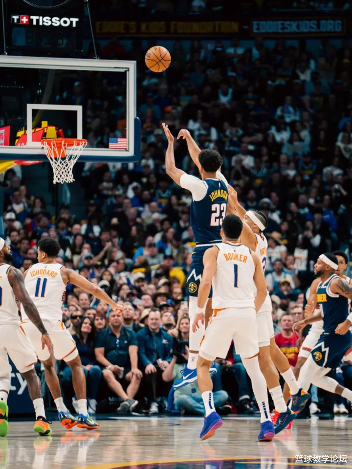 如果大家觉得5场的样本太小,我们再看一组数据:今年季前赛,约翰逊同样为掘金首发出战5场比赛,场均出战20.6分钟,得到8.2分2.6篮板1.4助攻1抢断0.4盖帽1失误,三项命中率:39.4%,30.4%,88.9%。