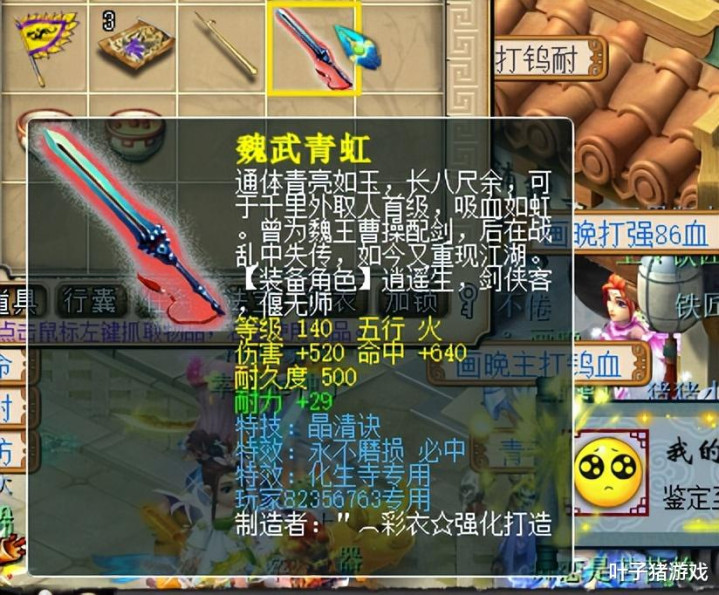 谁知竟一发入魂——不仅弹出专用界面,更逆天的是,一举炸出晶清诀、永不磨损加必中三大蓝字!属性上看,这把武器非常适合化生寺、方寸山等上端门派使用。它不仅能为全体队友解封并回复气血,还能省下大量珍珠成本,堪称一把任务帮战两不误的化生小神器。