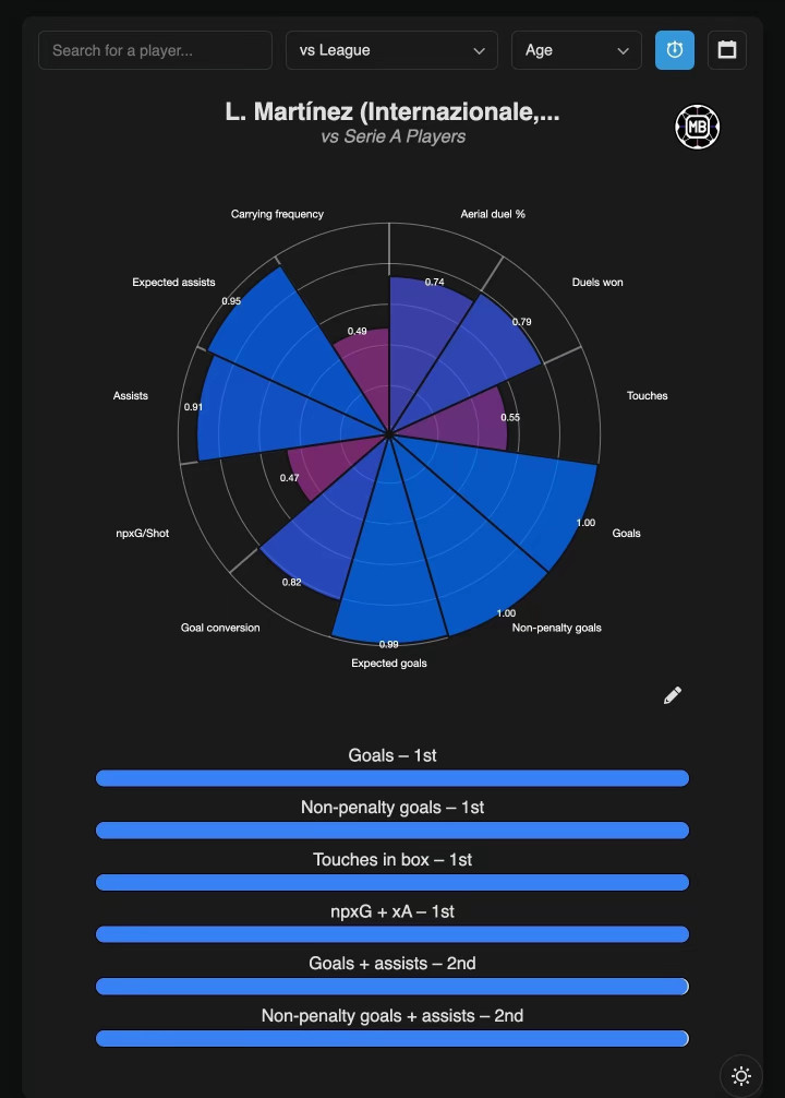 DATAMB:劳塔罗·马丁内斯本赛季意甲数据