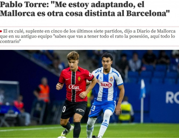 直播吧11月17日讯巴勃罗·托雷今夏从巴塞罗那加盟马洛卡,被视为球队的重要引援。原本托雷在巴萨出场时间不足的情况,并未在马洛卡得到明显改善。日前,托雷接受了《马洛卡日报》的采访。